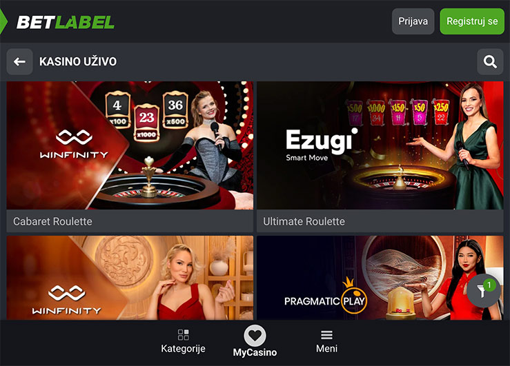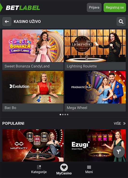 Mobilni kazino BetLabel nije samo pojednostavljena verzija – to je ista moćna mašina koju dobijate na desktop računaru, smještena u vaš džep. Interfejs zamjenjuje teške menije čistim, rasporedom prilagođenim palcu: prevucite horizontalno da biste se kretali kroz slotove, dodirnite svijetlu karticu “Uživo” da biste prešli na Evolution ili TVBet stolove ili otvorili historiju opklada u trenutku.